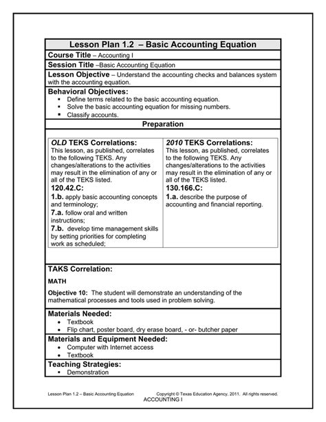 Read accounting equation lesson plans rtf Internet Archive